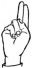 На ћирилици написано БЕРИША КОСТИЋ састоји се из 12 слова [?]. Исписано ћириличном једноручном азбуком за глувонеме: